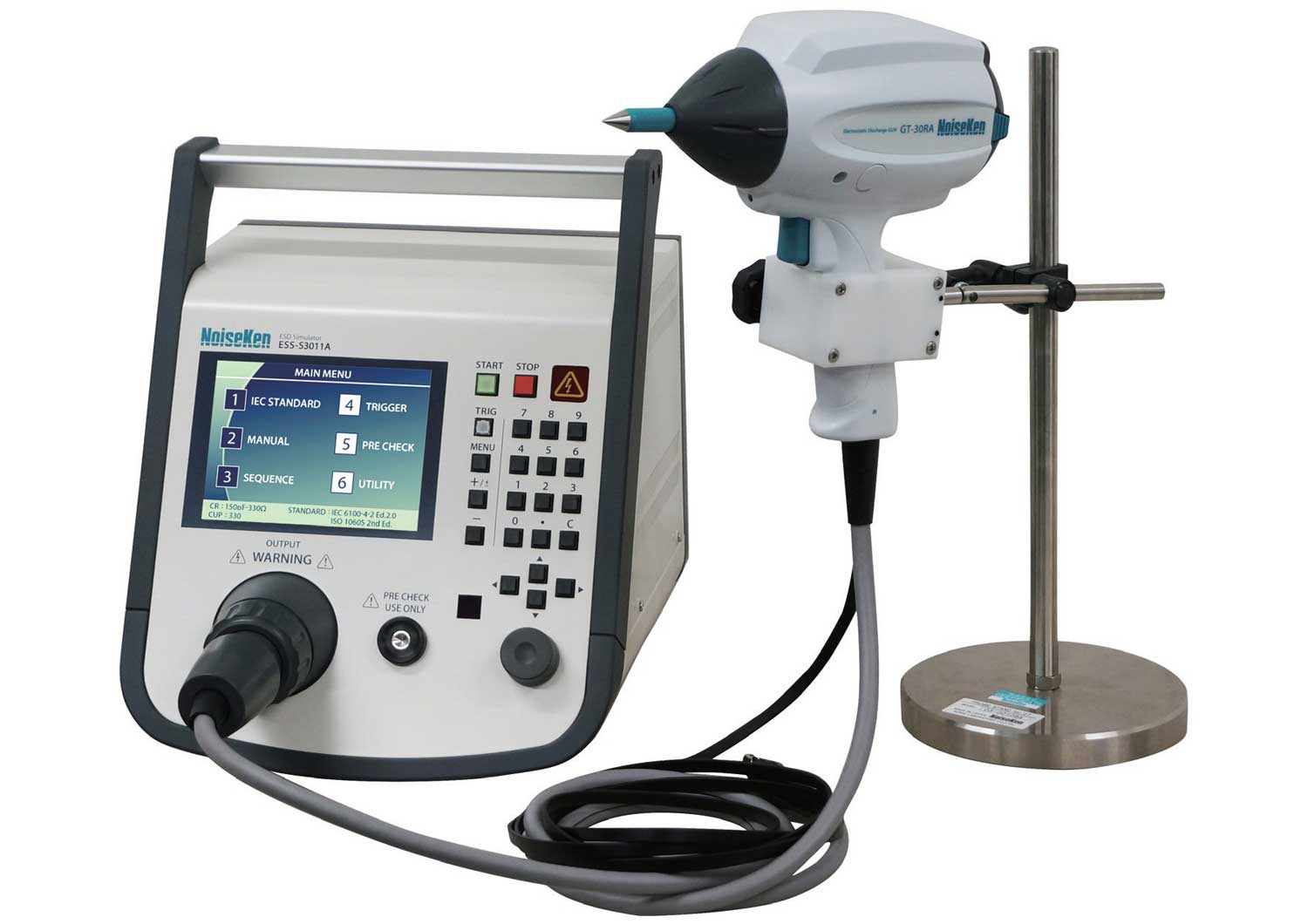The NoiseKen ESS-S3011A + GT-30RB is a complete ESD immunity testing system designed for compliance with IEC 61000-4-2 Edition 3.0.