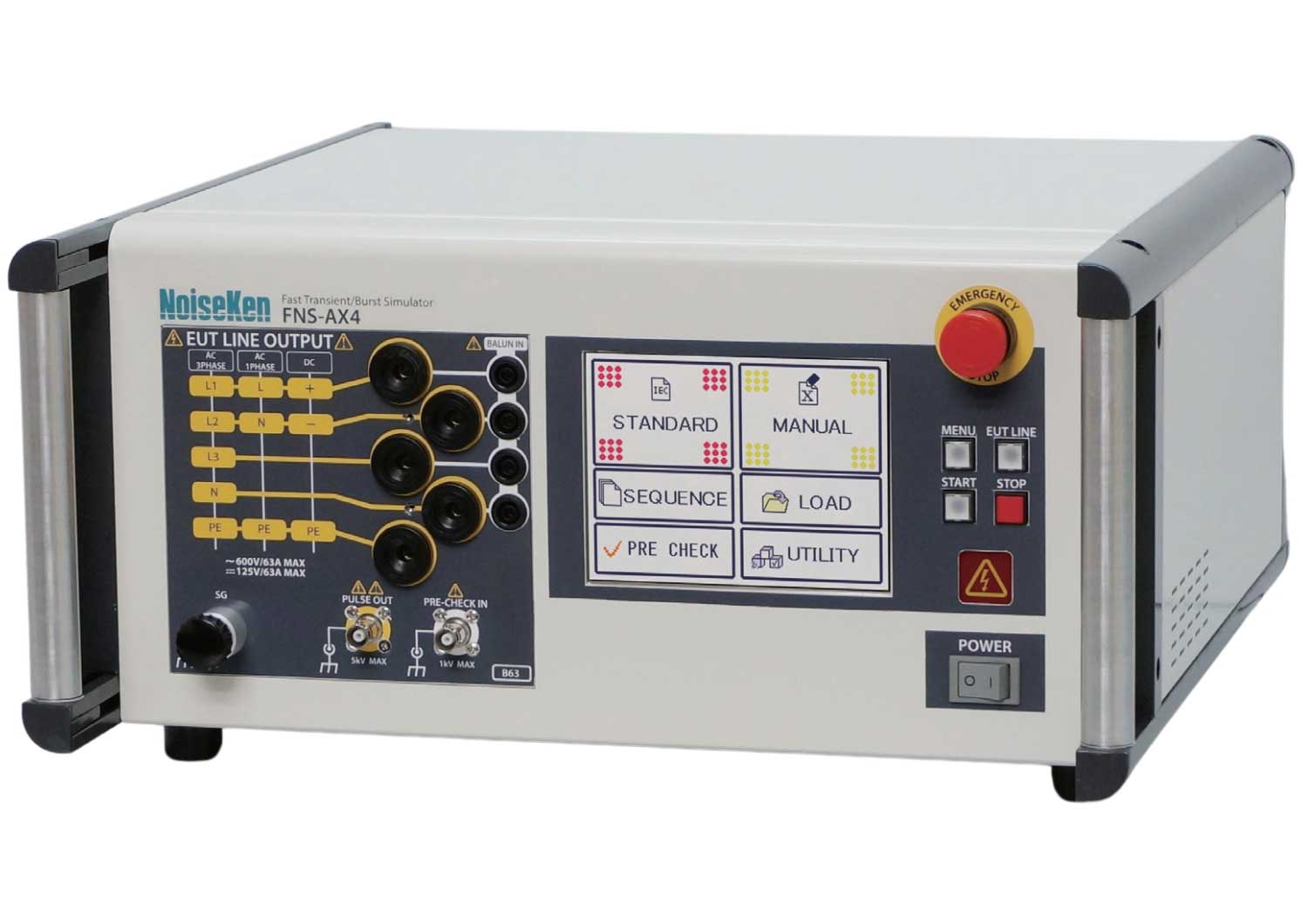 The FNS-AX4 Series represents Noise Laboratory’s latest generation of Fast Transient/Burst (EFT/B) simulators, designed for IEC 61000-4-4 Ed 3 compliance testing — the 3.0 edition of the standard.