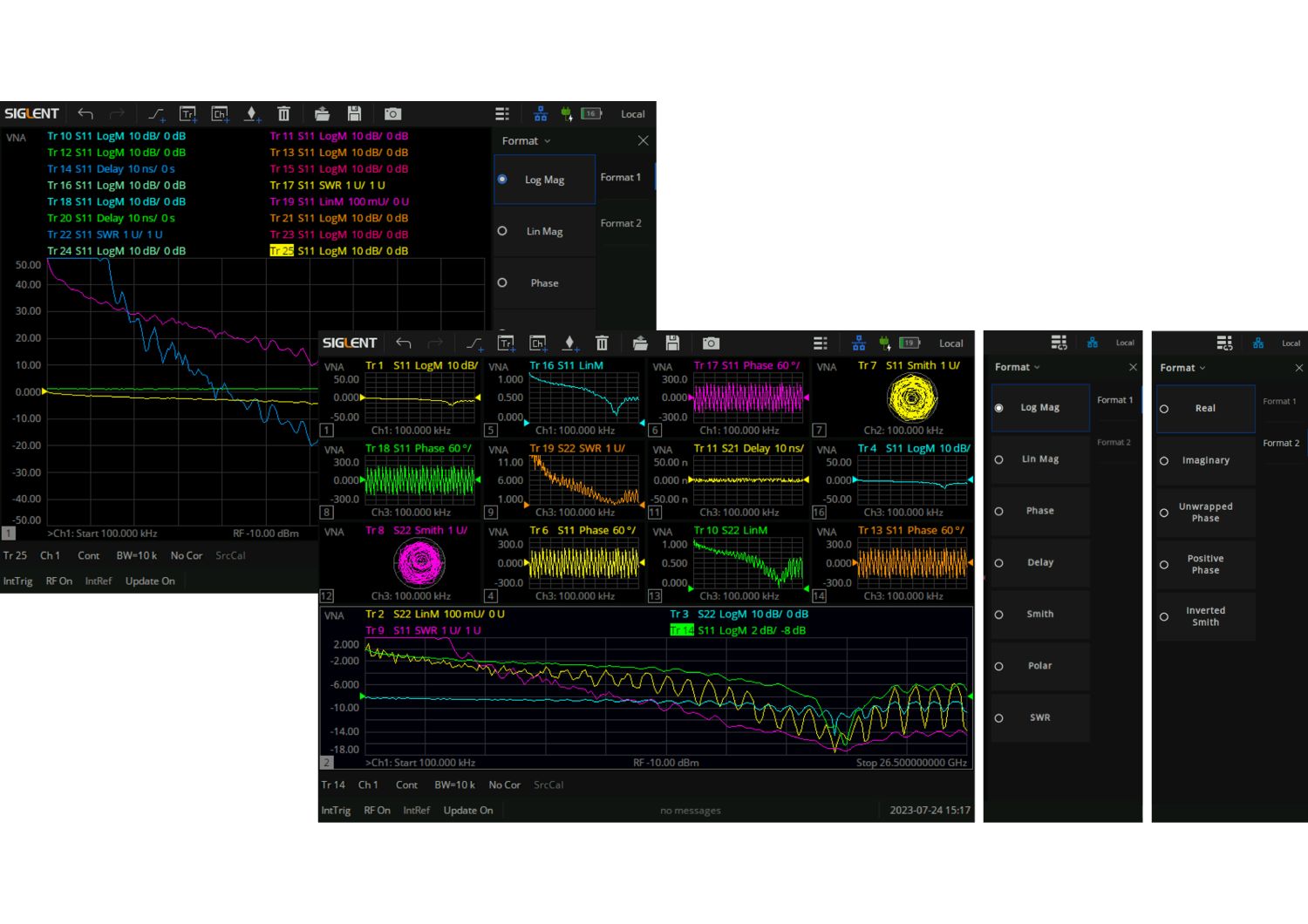 - Types of measurement: Scattering-parameter measurement, differential-parameter measurement, receiver measurement, time-domain parameter analysis, impedance conversion, fixture simulation, adapter removal/insertion, spectrum analysis