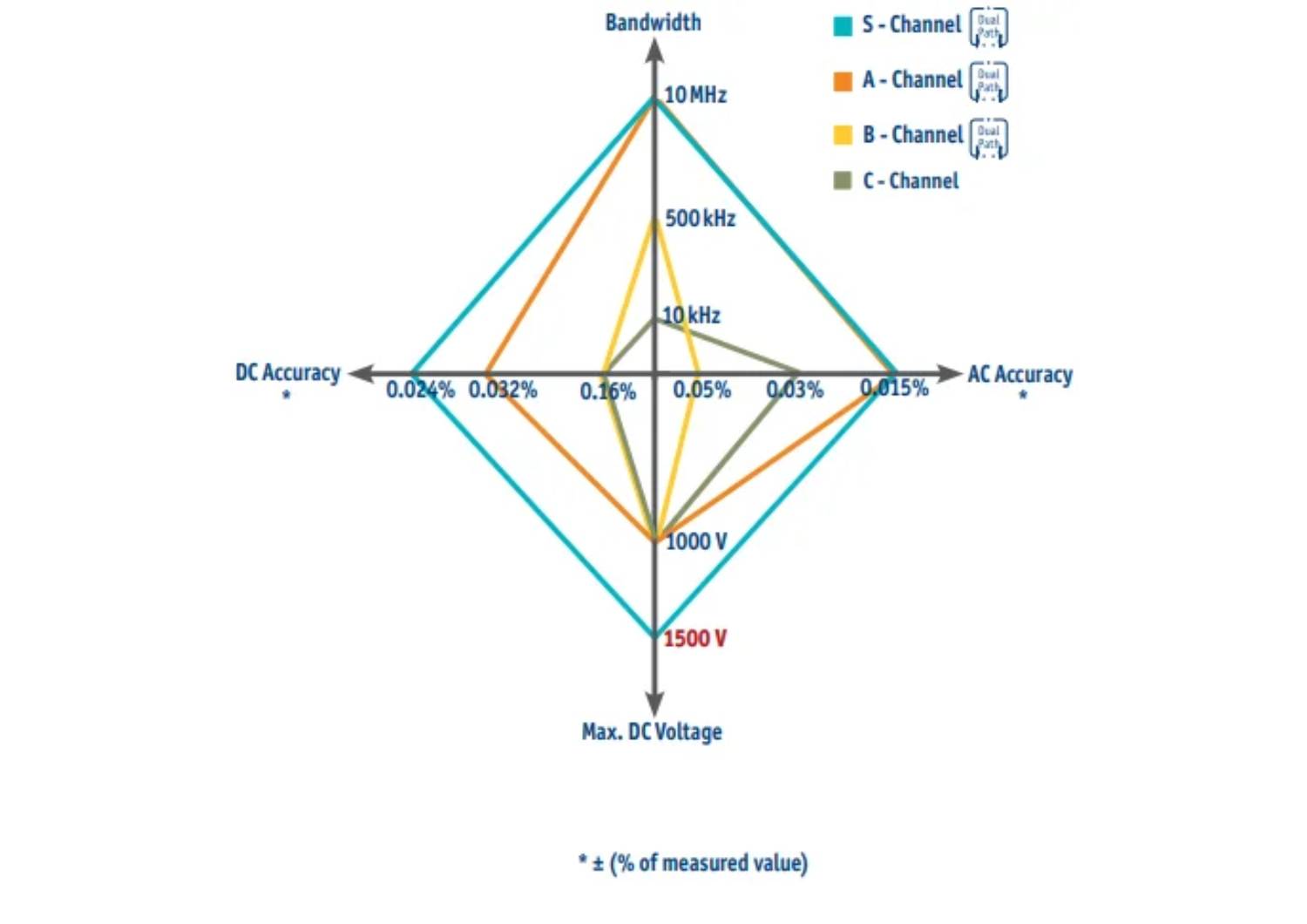 Details: Bandwidth DC – 10 kHz, best power accuracy 0.03% + 0.01%,